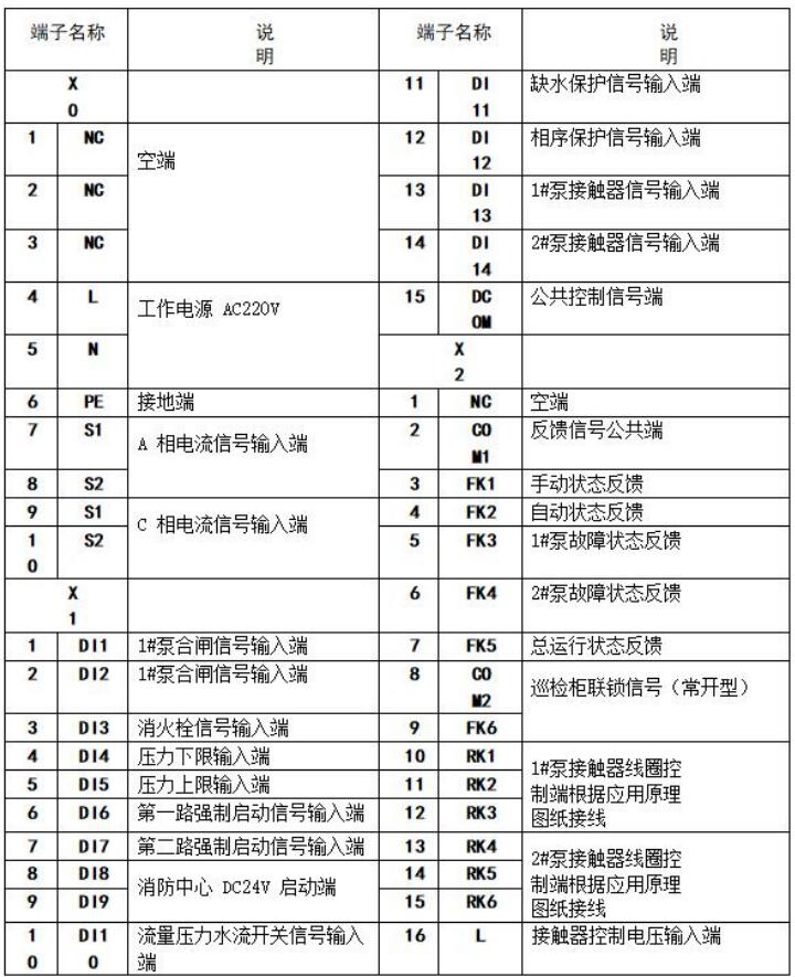 2 = 雙路強啟信號 (X1 端子排的 6#為 1#泵強制啟動、7#為 2#泵強制啟動,只能啟動 1 臺水泵, 啟動是根據(jù)信號的優(yōu)先處理)